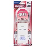 - "USB 2ポート付き 2口タップ 0.5m [HS-K1197W]"